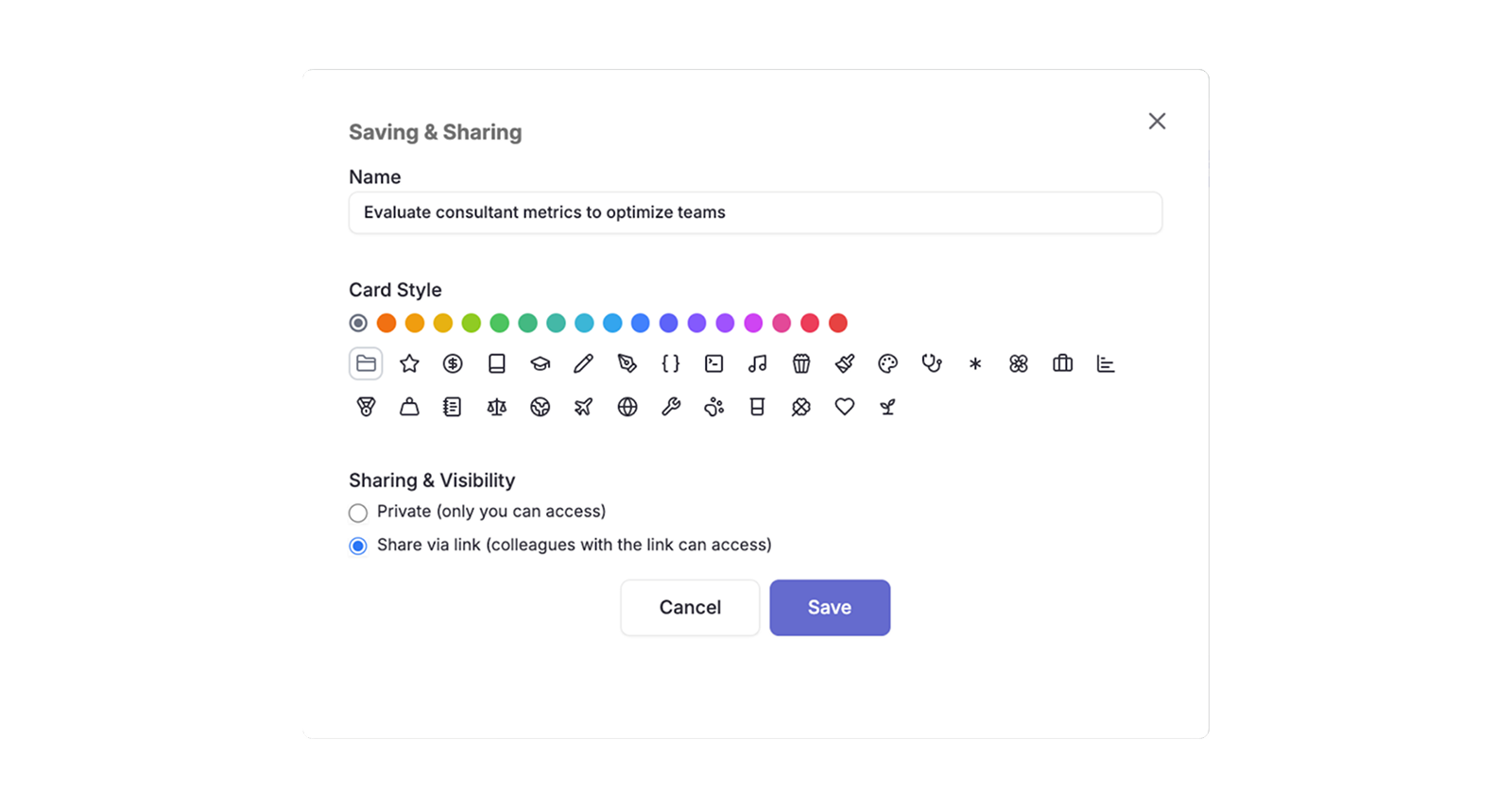 Users can share their use cases with each other and seed your company Use Case Library, turning individual discovery into organizational knowledge.