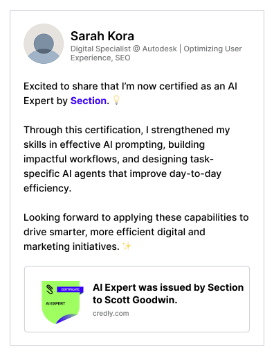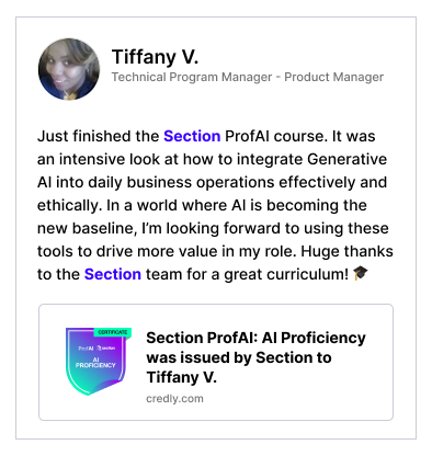Our certificate programs and badges give you LinkedIn-ready credentials that show you've mastered AI skills employers actually care about.